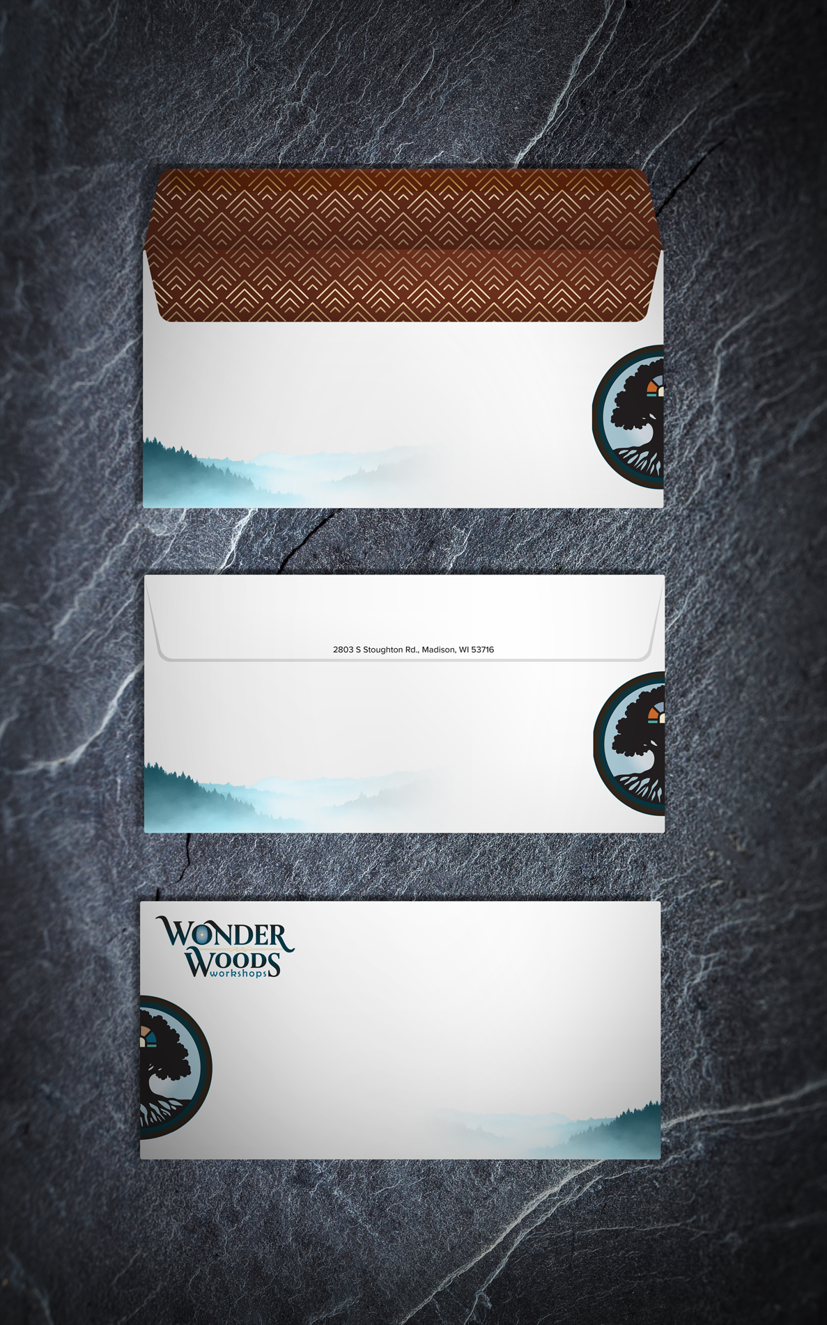 The development process focused on refining the stationery package to maintain brand cohesion. The designer initially completed the business card, but they took an iterative approach to integrate the letterhead and envelope, ensuring consistency. Soegaard (2020) and WP Engine (2024) highlighted principles that inspired the designer to utilize white space, enhancing readability and creating visual emphasis. A misty mountain range was subtly incorporated at the bottom of the card to align with the brand theme established on the letterhead. The full-color logo was strategically placed across the letterhead and envelope to unify the visual identity. In contrast, a chevron-patterned interior in the envelope reflected the design elements used on the business card's reverse side. These refinements ensured harmony while reinforcing brand messaging.